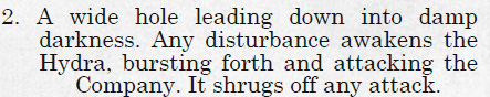 Instead, I could’ve rolled on the table of treasures the Hydra keeps in one of its mouths to draw victims out. I could’ve then had the Seer demand that the Knights bring back this artifact - thus adding another fun layer of complication to the characters’ interaction with this Myth.